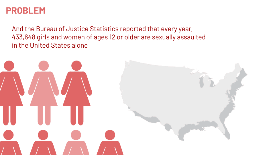 Houston is the number one human trafficking site in America. According to the World Health Organization, almost 1 in 3 women have been subjected to either physical or sexual violence in their lifetime worldwide. And the Justice Statistics reports that every year, an estimated 400,000 girls are assaulted in the United States alone. After my own car was broken into living here, I felt I needed to do something.