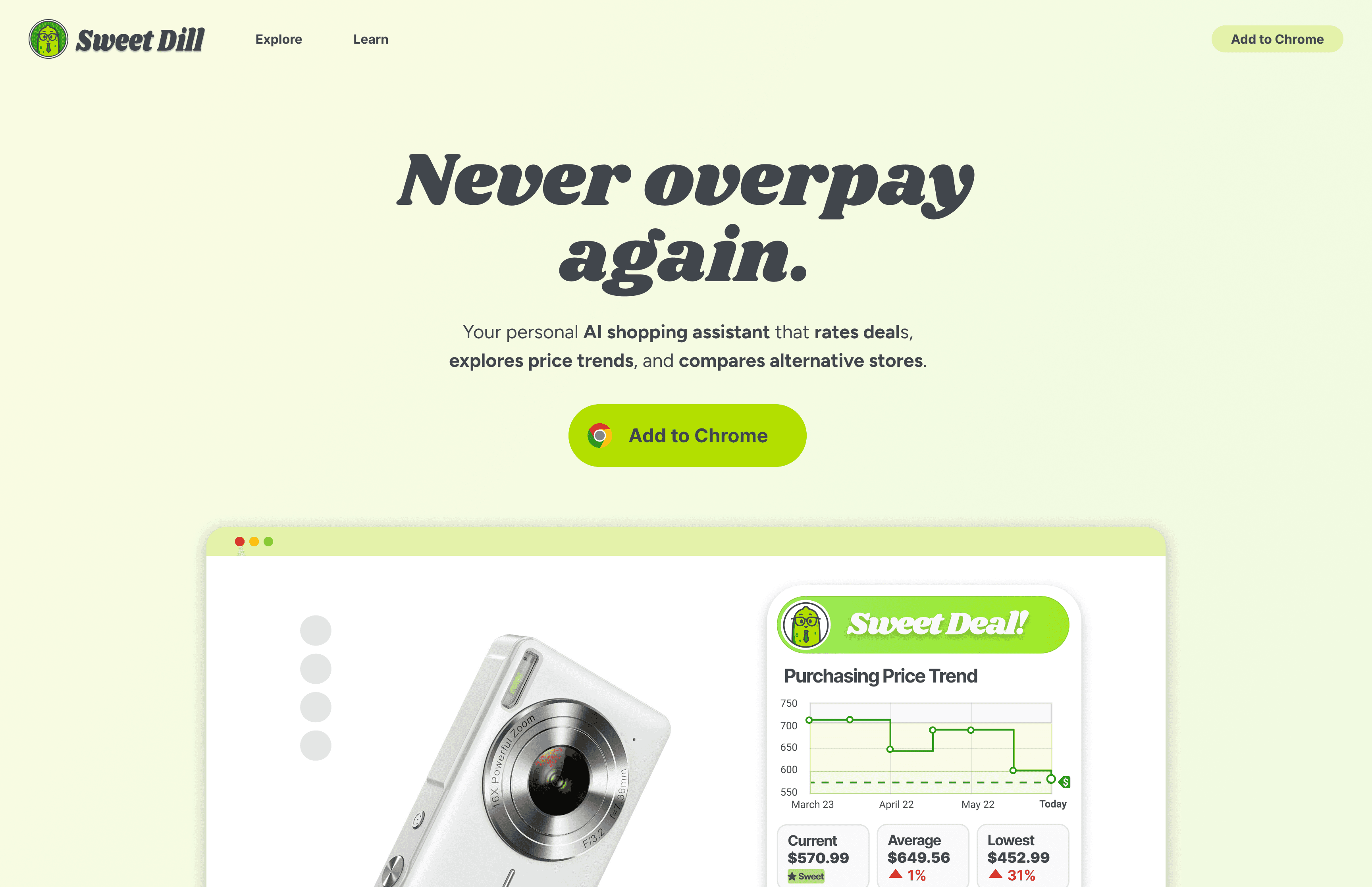 Sweet Dill is an AI-powered shopping assistant that restores trust in e-commerce. It analyzes reviews, validates promo codes, and compares prices across sites—free from affiliate bias. With a subscription-based model, Sweet Dill empowers users to shop smarter, combining transparency, accuracy, and convenience in one truth-driven, user-first platform.