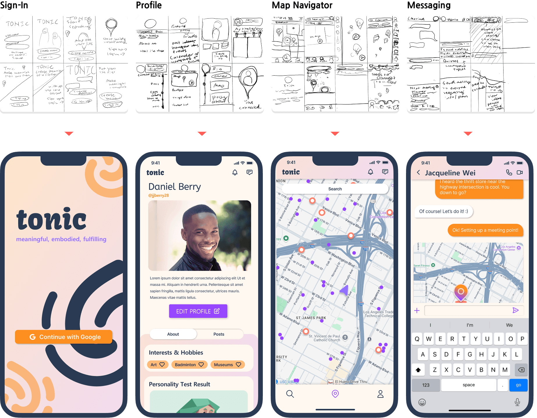 I also developed the Tonic app interface through Crazy Eights and wireframing on Figma.